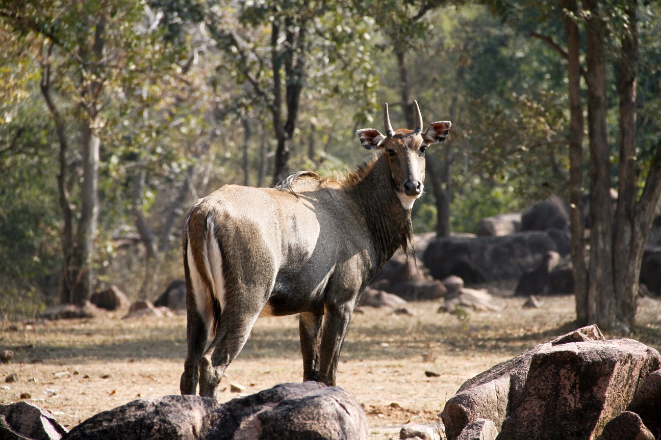 Among the deer species Swamp Deer or Hard Ground Barasingha is pride of the place as it is the only sub species of swamp deer in India (Cervus duavcelli branderi). The animal is adapted to hard ground unlike swamp deer of the North which live in marshy swamps. Kanha National Park has been instrumental in rescuing the “Swamp Deer” from extinction. Indian Gaur (Bos guarus), belonging to the ox genus, is found in Kanha but seen mostly as winter ends. In summer gaur inhabit meadows and water holes in the park. Other commonly seen animals in the park include the spotted deer, sambar, barking deer and the four-horned deer. The latter can be seen at Bamni Dadar climb. Recently, mouse deer have also been discovered in the tiger reserve.